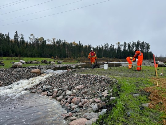 The realignment of the Mollie River was initiated through the construction phase of the Côté Gold mine. In the fall of 2023, Crossing #3, which connected the outlet of Chester Lake to Oshki Lake, was completed, and the Mollie River was officially rerouted around the mine site!
