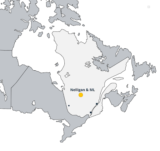The Nelligan Gold Project is located in the Nord-du-Québec region of Québec, Canada, approximately 60 km southwest of Chibougamau and 45 km south of Chapais. Monster Lake is located 15 kilometers north of Nelligan.