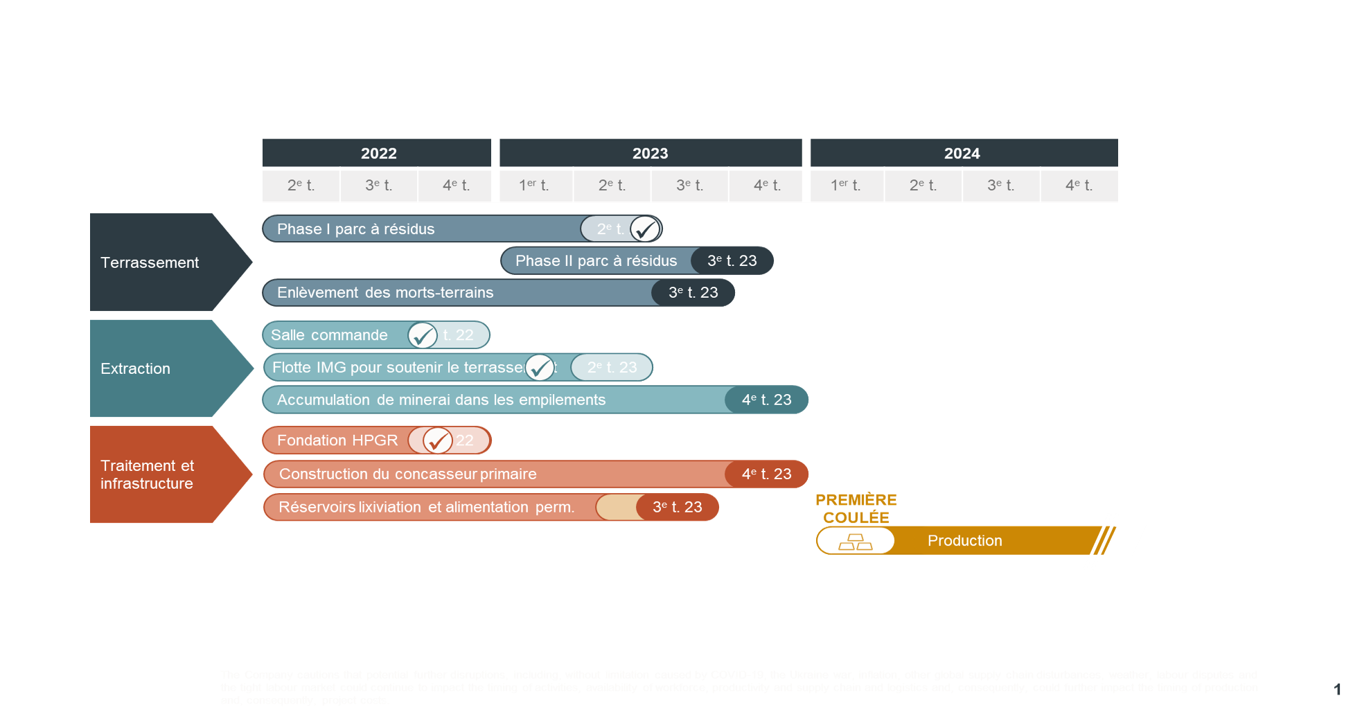 la construction à celle de l’achèvement et de la préparation opérationnelle. Les activités d’exploitation minière